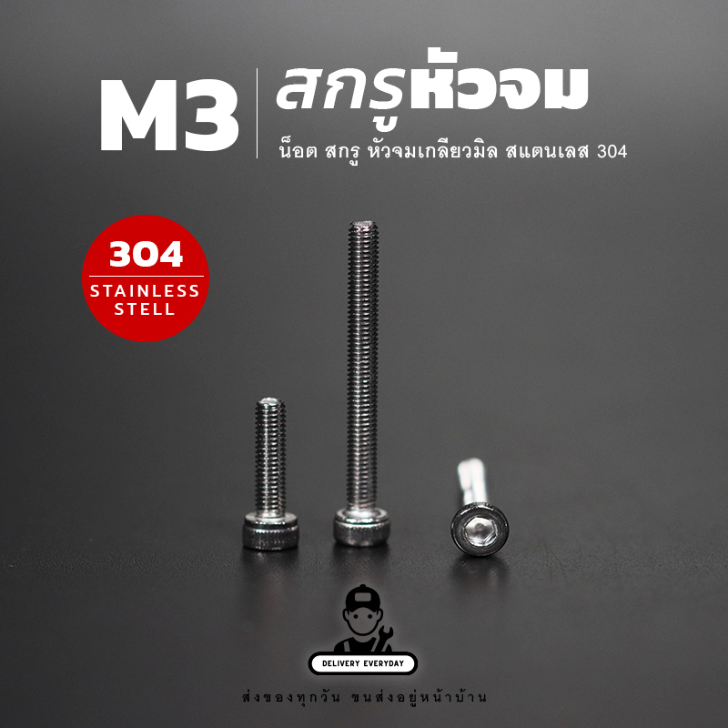 สกรูหัวจมสเตนเลส ขนาด M3 แบบเกลียวมิล เกลียวละเอียด 0.5 BSW ยึดเกาะแน่นหนา ทนทาน ไม่คลายง่าย ป้องกันปัญหาการหลุดร่วง ดีไซน์หัวจม ขันแน่น ขันง่ายด้วยประแจแอลหกเหลี่ยม เหมาะกับงานหลากหลายประเภท