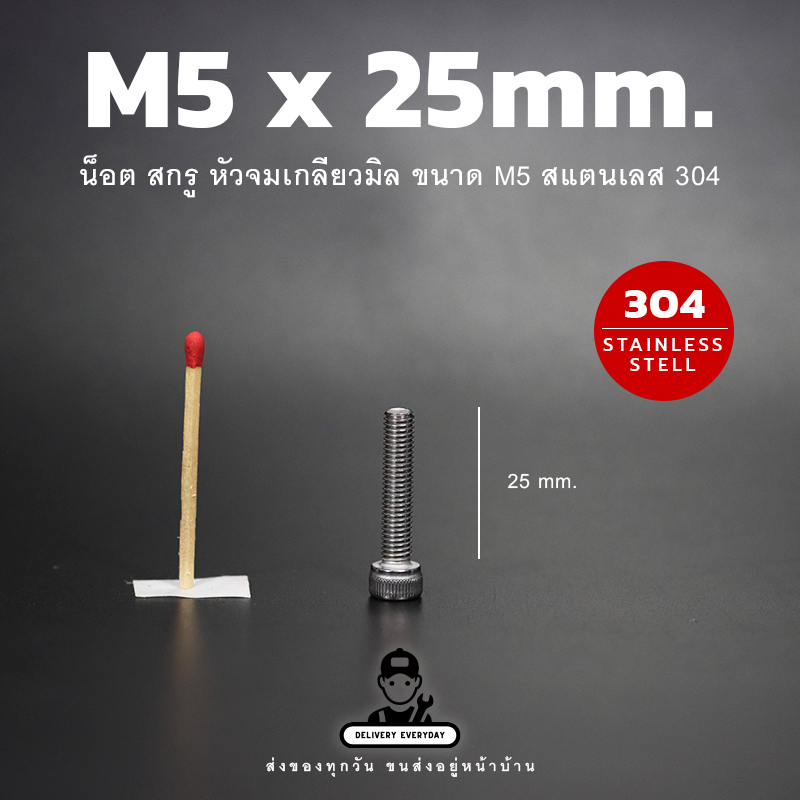 สกรูหัวจมสเตนเลส ขนาด M5 แบบเกลียวมิล เกลียวละเอียด 0.8 BSW นอตตัวเมียเบอร์ 8 ยึดเกาะแน่นหนา ทนทาน ไม่คลายง่าย ป้องกันปัญหาการหลุดร่วง ดีไซน์หัวจม ขันแน่น ขันง่ายด้วยประแจแอลหกเหลี่ยม เหมาะกับงานหลากหลายประเภท