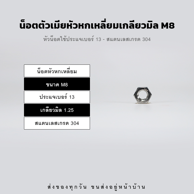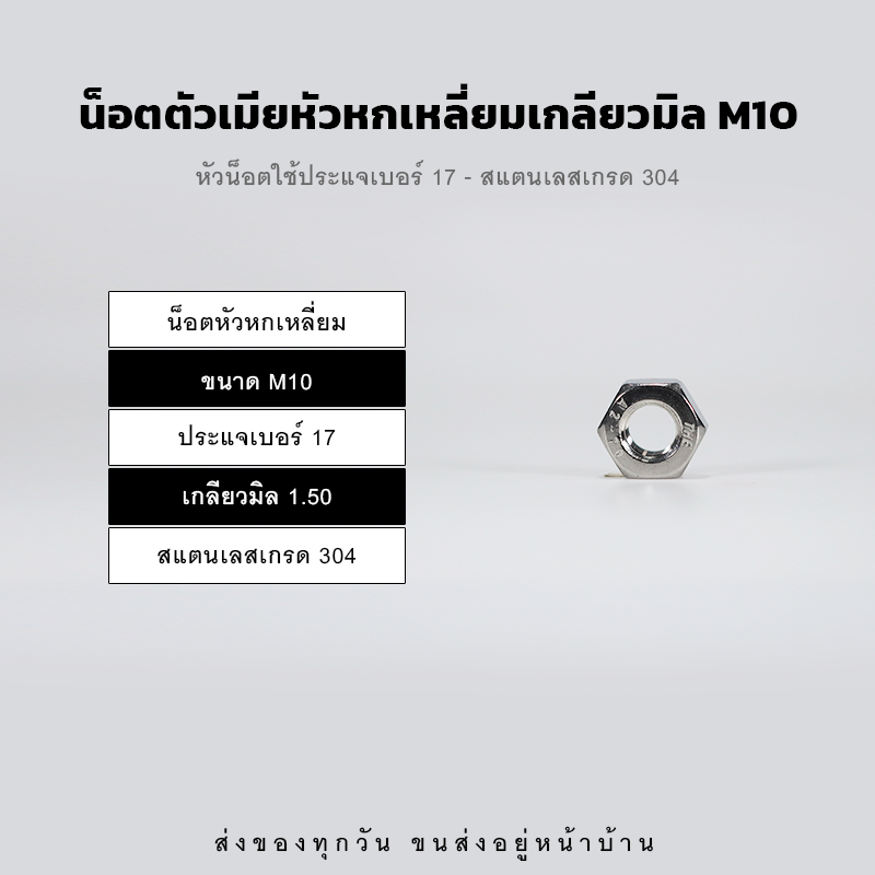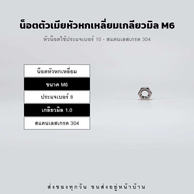 หัวน็อตตัวเมีย หกเหลี่ยม เกลียวมิล เกลียวละเอียด – สแตนเลส 304
