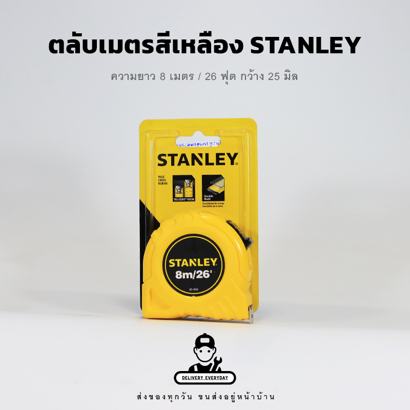 ตลับเมตรสีเหลือง แบรนด์ STANLEY ขนาดกระทัดรัด พกพาสะดวก สำหรับช่างมืออาชีพ สเกลยาวต่อเนื่อง ตัวหนังสือหน่วยวัดคมชัด มองเห็นได้อย่างชัดเจน